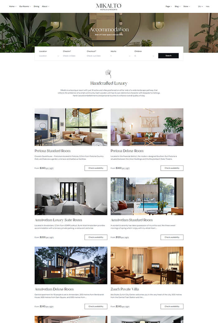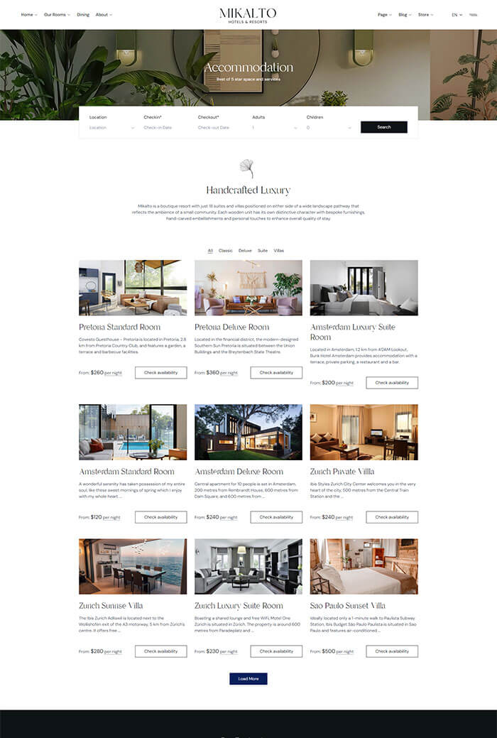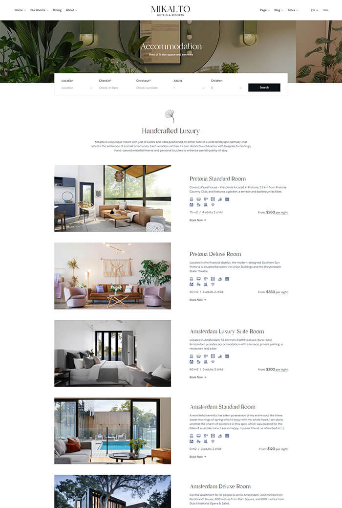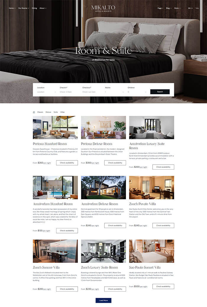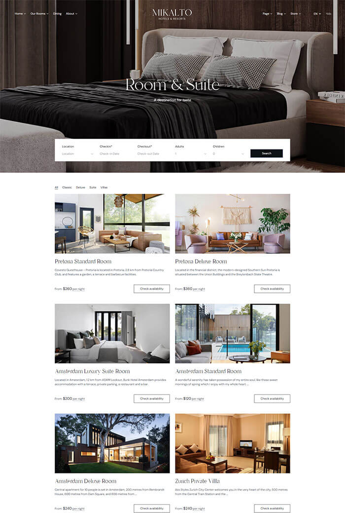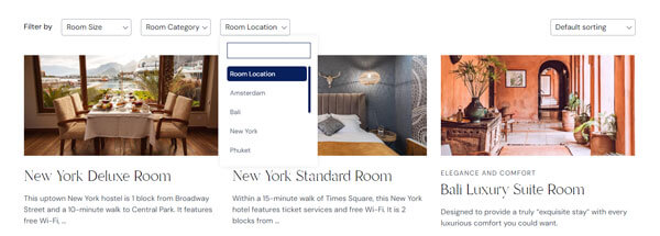 We integrate ajax filter to find the fastest room types by request. And filter by different locations.